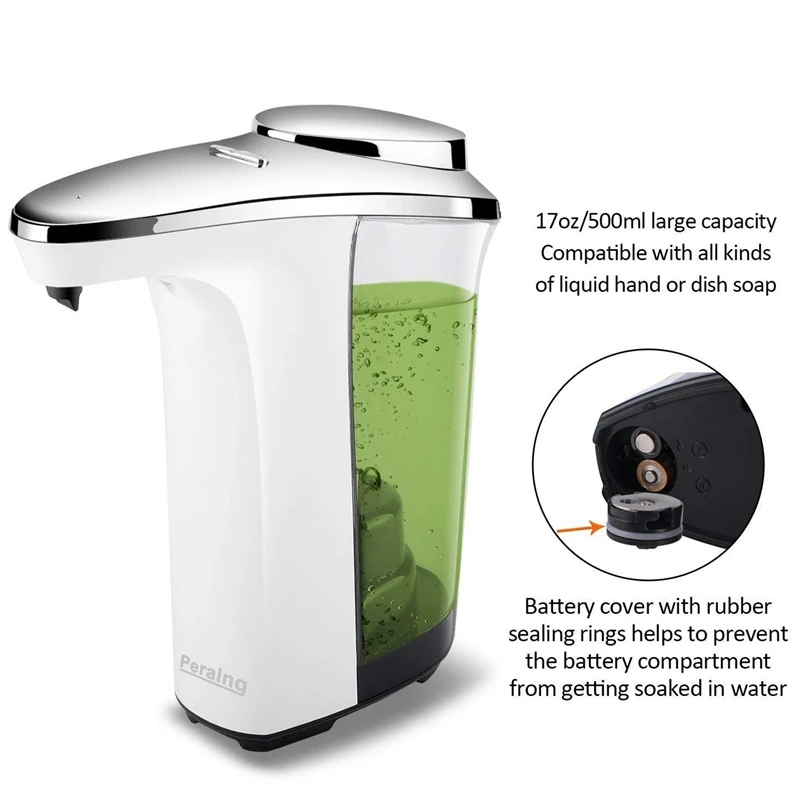 [Большая емкость и низкое энергопотребление] Большая емкость совместима со всеми видами жидкого мыла для рук или посуды, а также отлично подходит для рук или лосьона для тела. Низкое энергопотребление, длится до 8-12 месяцев (около 3500 раз) с 4 щелочными батареями АА (не входят в комплект)