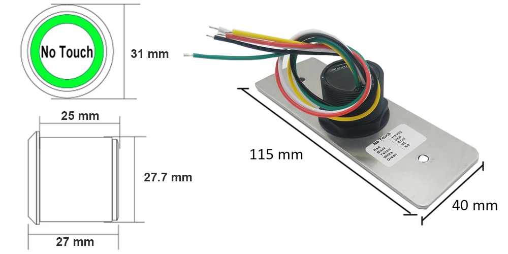 Материал датчика: пластик Панель: 201 панель из нержавеющей стали Водонепроницаемость: IP68 Контактная Оценка: 3A, AC 120V / DC 30V Входное напряжение: 12-24 В постоянного тока Выходной контакт: NO/NC/COM Рабочая температура (прибл.): от 0 до 50 ℃ Диапазон отклика: в пределах 10 см Светодиодный индикатор: Режим ожидания: синий светодиодный, приближение посетителей: зеленый светодиодный индикатор Размер K5 (приблизительно): 115x40x27 мм
