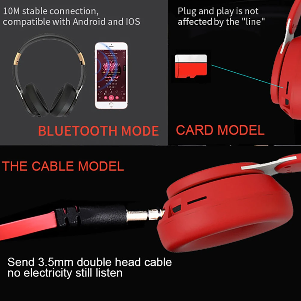-Купите один наушник, вы можете испытать 3 различных режима воспроизведения (беспроводной/проводной/режим tf-карты), чтобы удовлетворить ваши ежедневные разнообразные потребности, которые заслуживают попробовать.