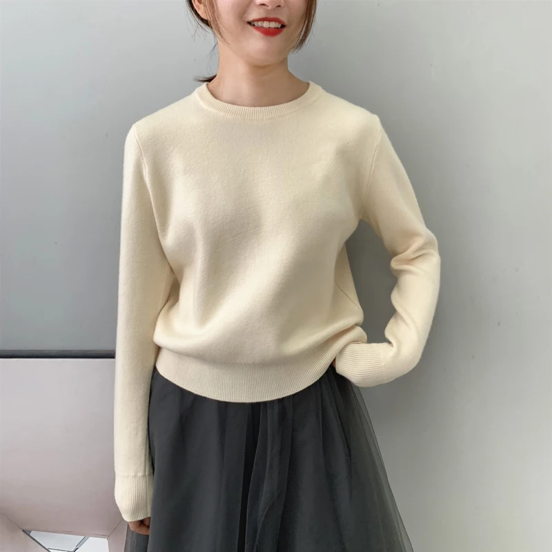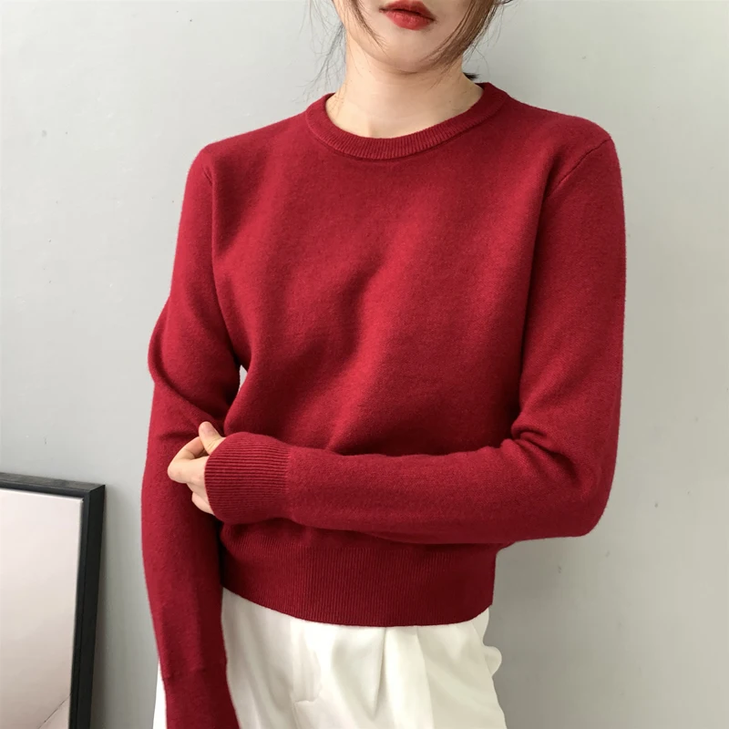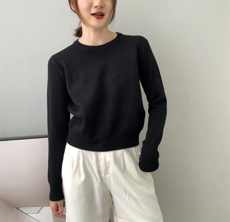 Осенне-зимние женские шерстяные свитера и пуловеры с длинным рукавом, повседневный укороченный свитер, тонкие однотонные вязаные Джемперы, свитера mujer
