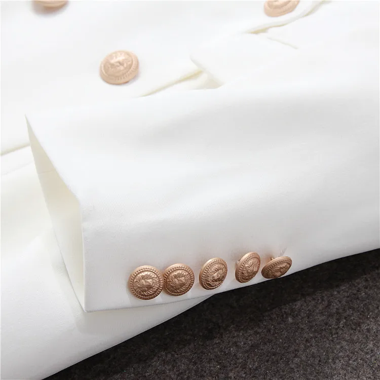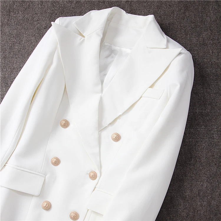 Новинка осени 2020, сексуальный женский блейзер с разрезом, белый, длинный, двубортный, золотой цвет, пуговица, длинный рукав, облегающий костюм, куртка, платья