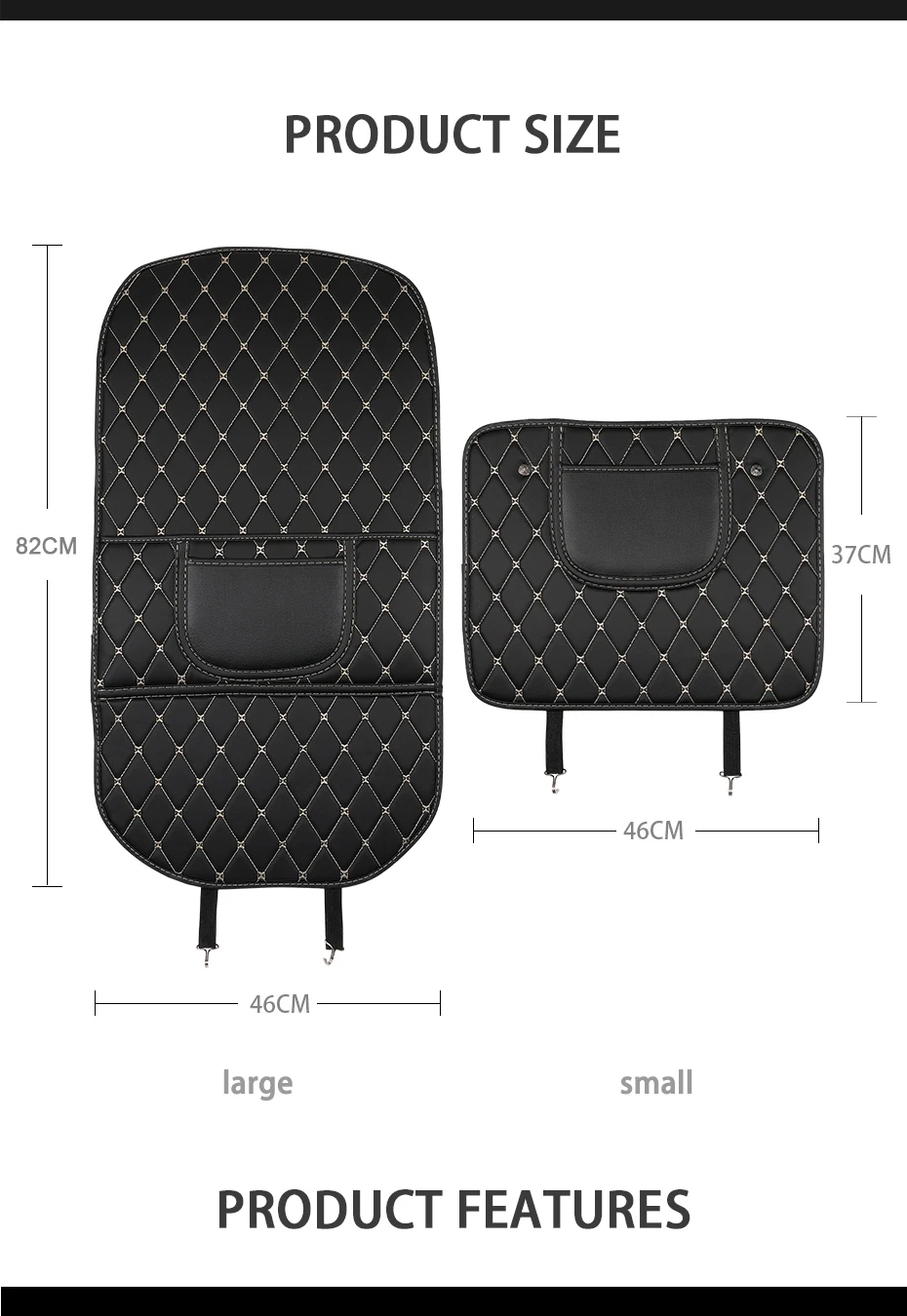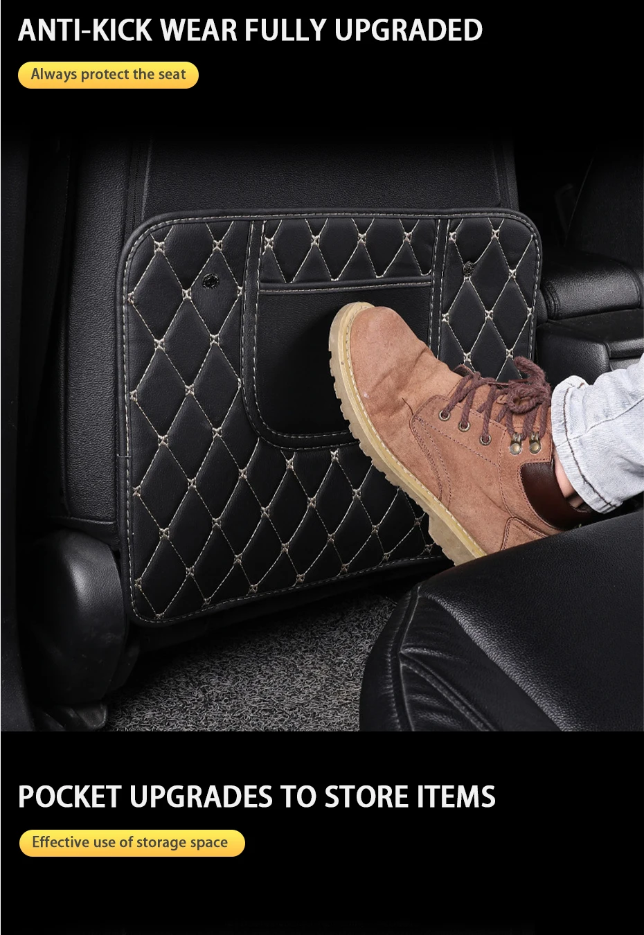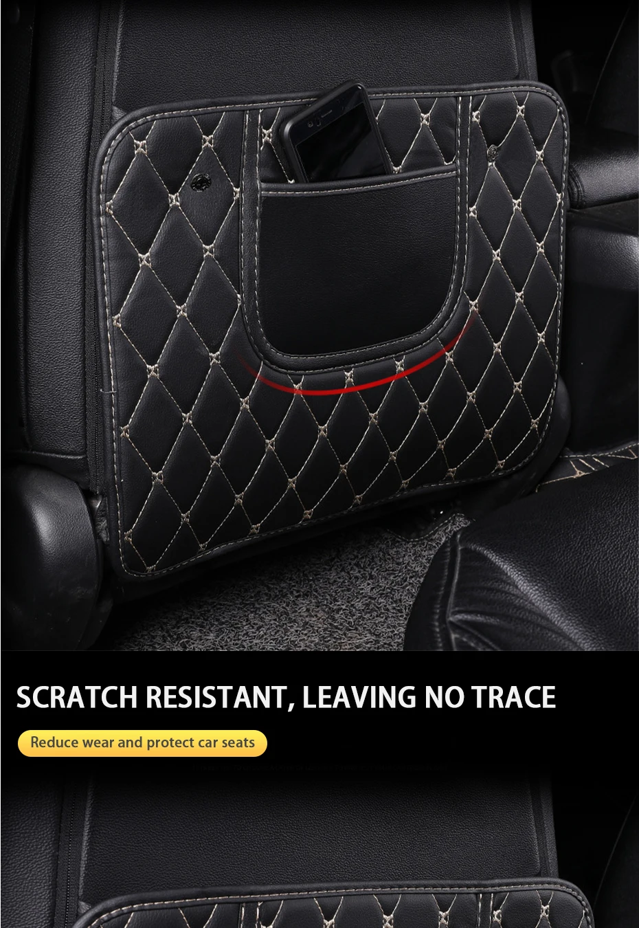 Накладка anti kick предназначена для предотвращения случайного царапания пассажирами заднего сиденья и загрязнения сиденья. Помимо защиты заднего сиденья, этот продукт также имеет дизайн хранения, простой и удобный, и он может лучше вооружать ваш автомобиль.