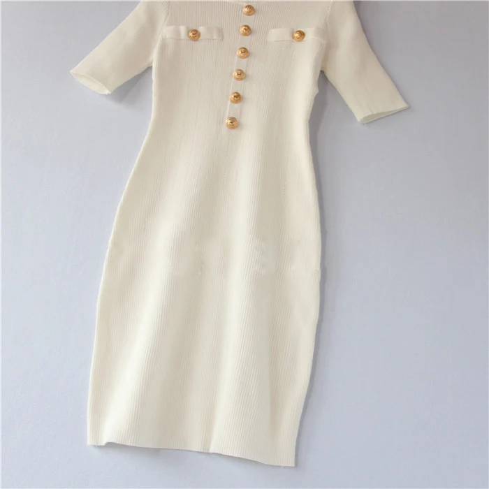 Casual Bodycon Pencil Mini Knitted Dress O-neck Collar White and Black Mini Dress Short Sleeve Women khaki Pencil Dress Autumn