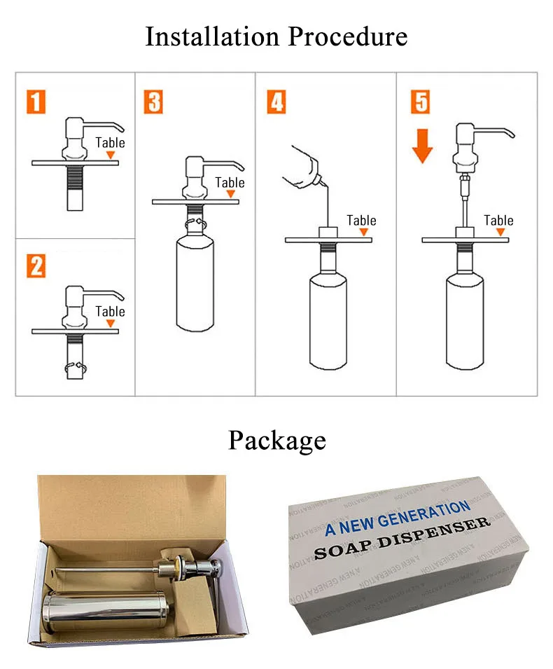 Нержавеющая сталь, кухонный диспенсер для мыла, металлический насос для мыла, вращающийся диспенсер для жидкого мыла, бутылка, кухонная раковина, аксессуары, комплект