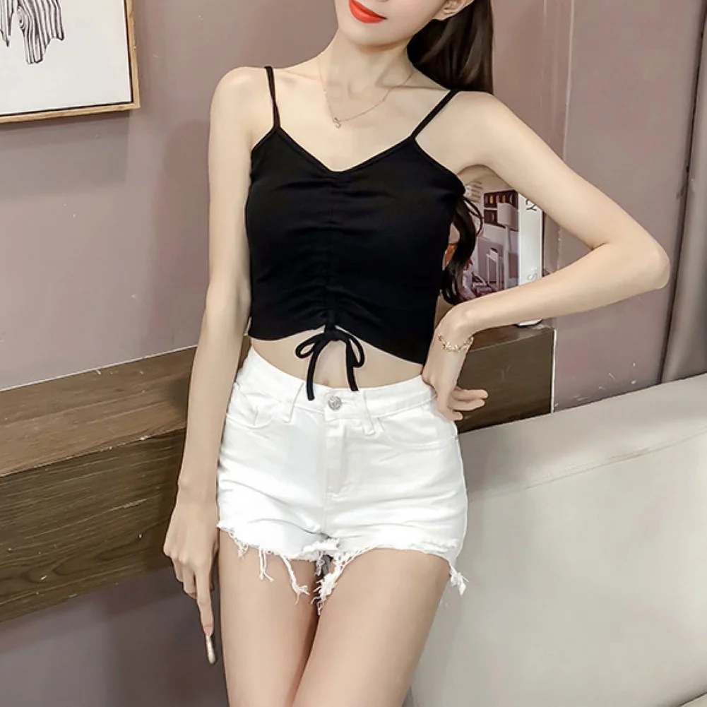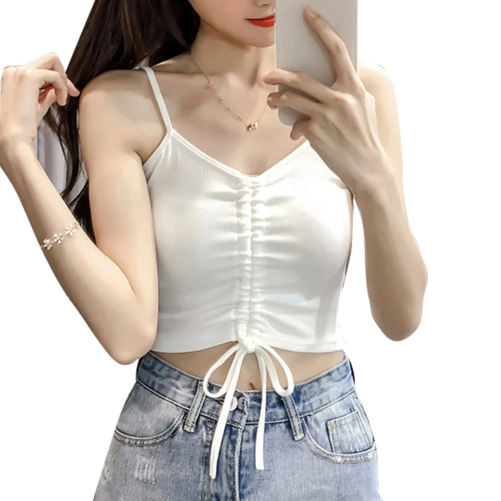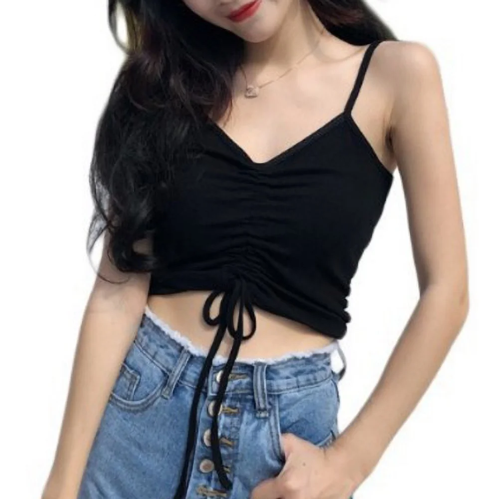 Кроп-топ имеет дизайн с рюшами с потрясающим галстуком на завязках спереди, чтобы показать ваш стиль.