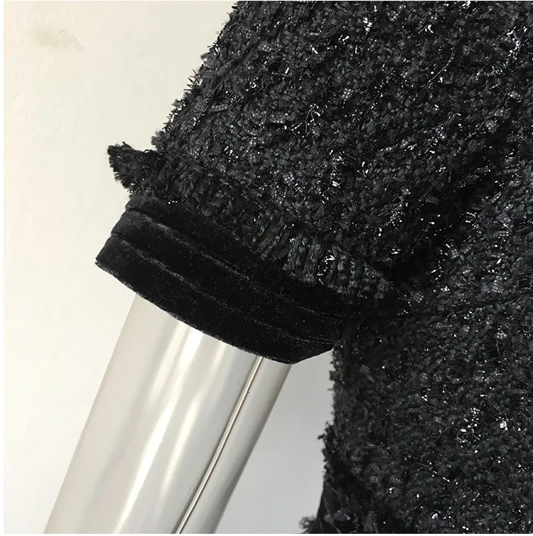2020 новые весенне-осенние твидовые платья, Черное женское платье, вельветовое облегающее платье с короткими рукавами