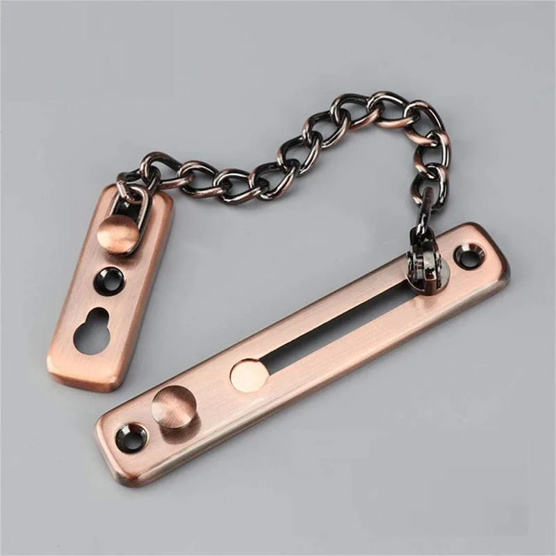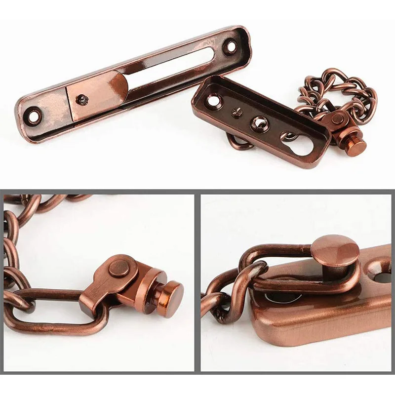 Гладкий и элегантный дизайн-дверная цепь для безопасности из нержавеющей стали отполирована красным бронзовым цветом, который является простым и стильным, идеально подходит для современного домашнего декора, А также обеспечивает удобный пресс с гладкой поверхностью.
