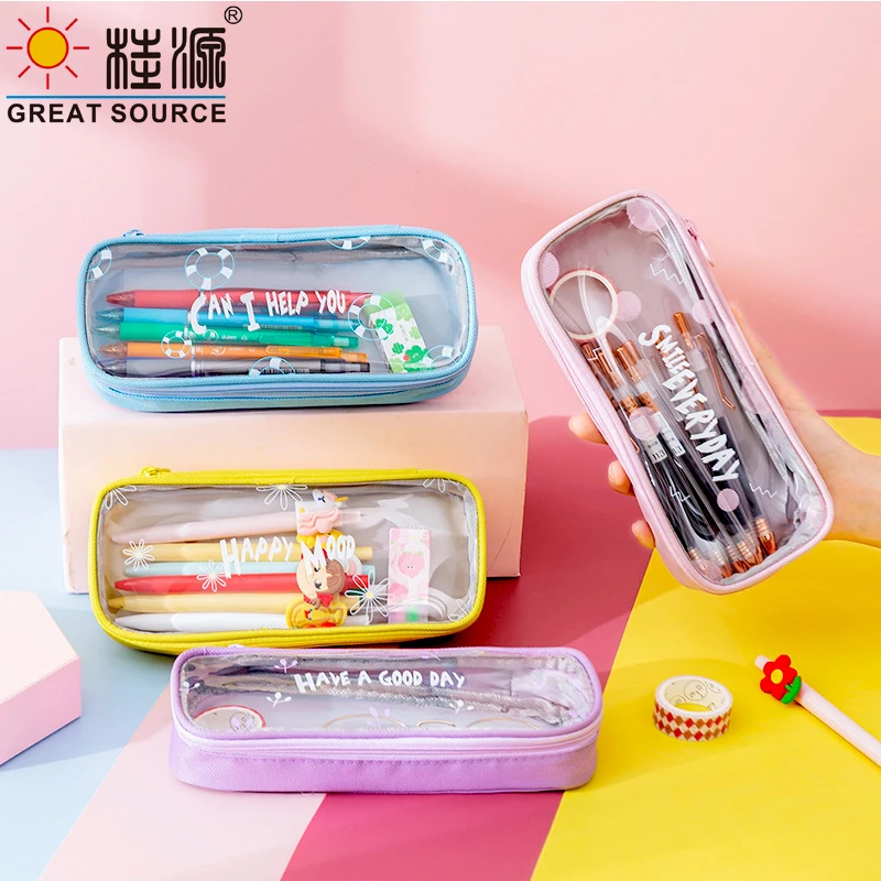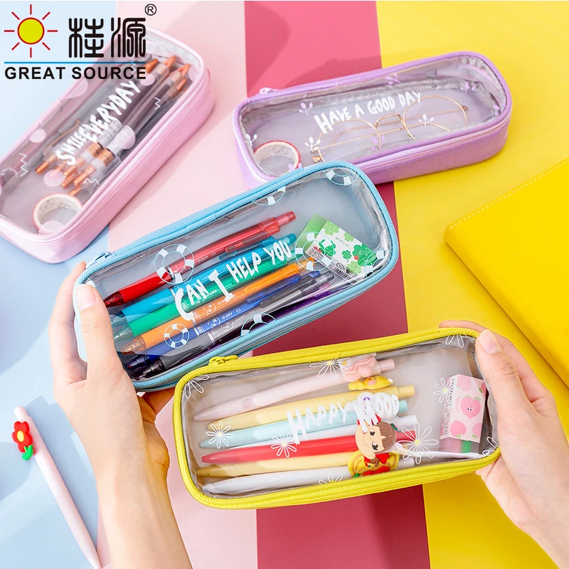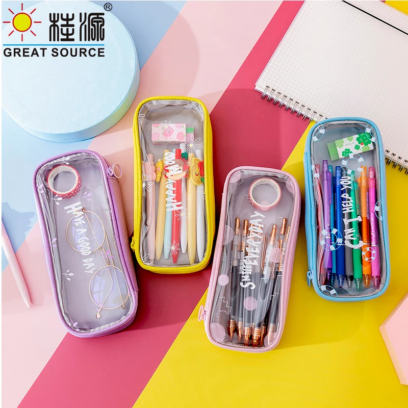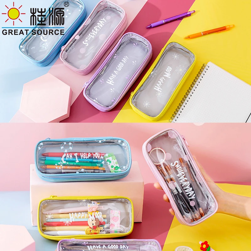 Transparent Lid Pencil Case For School Stationery Bag Pencil Case Aesthetic Big Space Pencil Bag Ziplock Closer