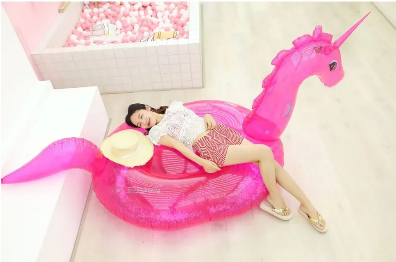 Новинка Единорог из горного хрусталя детский мультяшный Плавающий надувной плот прозрачная розовая зеленая лошадь над водой для взрослых двойное крепление водный