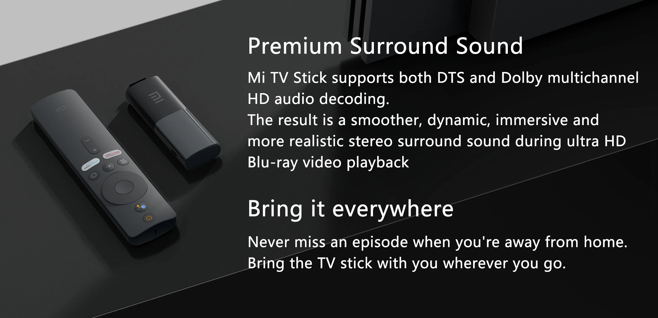 Mi TV Stick поддерживает как DTS, так и Dolby многоканальное HD аудио декодирование. Результат-более плавный, динамичный, захватывающий и реалистичный объемный стереозвук во время воспроизведения видео ultra HD Blu-Ray