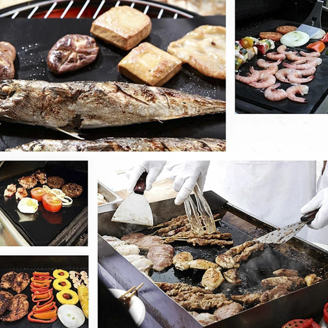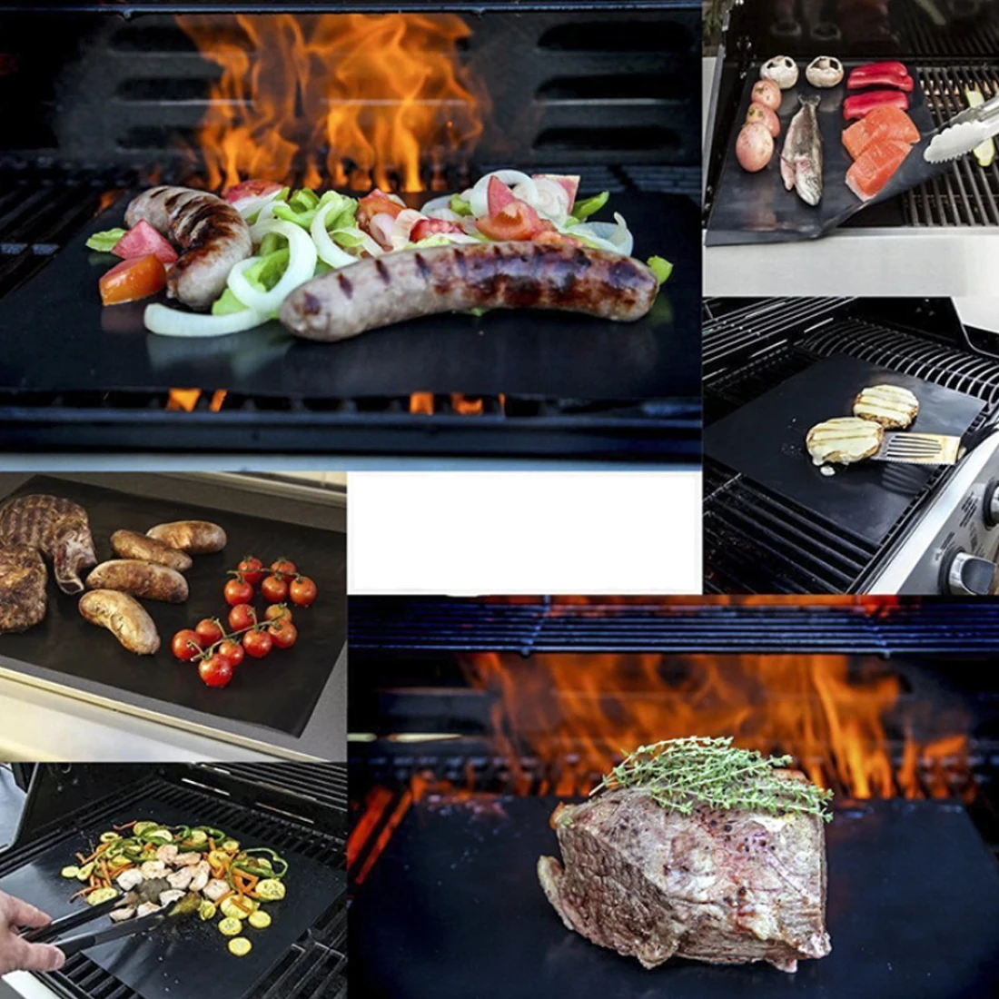 1. Курица/яйца/ребрышки/рыба/овощи/стейки/бургеры/кабобс/Креветки/бекон/сэндвич с сыром на гриле и многое другое! 2. Ручная стирка и безопасность в посудомоечной машине. 3. Коврики могут храниться как плоскими, так и свернутыми. 4. Коврик для барбекю можно использовать сотни раз. 5. Антипригарная поверхность, легко моется многоразового использования 6. Черный цвет используется для гриля, Желтый используется для выпечки. 7. Размер: черный 400*330 мм