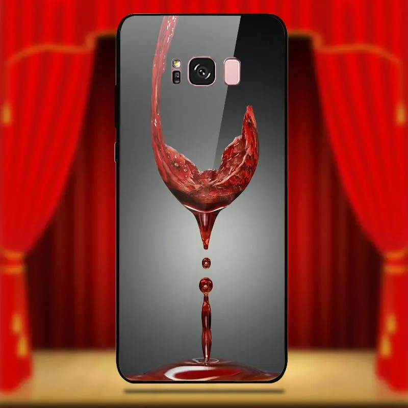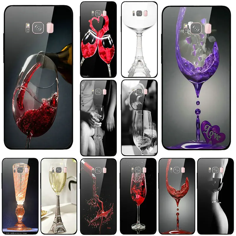 Чехлы для телефонов из закаленного стекла для Samsung Galaxy A6 A8 A8S A9S S8 S9 S10 Plus Lite, сумки с Эйфелевой башней, красным винным стеклом, черным узором, чехол для телефона, противоударный чехол, защитный чехол для телефона