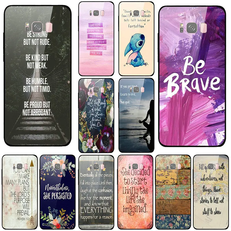 Mobile Phone Cases Cover for Samsung Galaxy A6 A8 A8S A9S S8 S9 S10 Plus Lite Coque Bags Positive Mentality Bible Verse Brave Black Pattern Phone Shell Anti-knock Cover Protect Phone Case