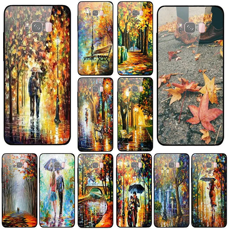 Для Samsung Galaxy A6 A8 A8S A9S S8 S9 S10 Plus Lite мобильный телефон из закаленного стекла Чехлы Love In Autumn рисунок черный узор чехол для телефона противоударный чехол защитный чехол для телефона