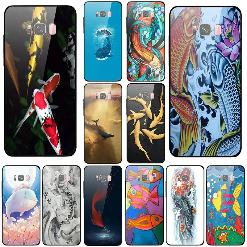 Мобильный телефон из закаленного стекла, чехлы для Samsung Galaxy A6 A8 A8S A9S S8 S9 S10 Lite Plus, чехлы Koi Fish, японское искусство, черный узор, чехол для телефона, противоударный чехол, защитный чехол для телефона