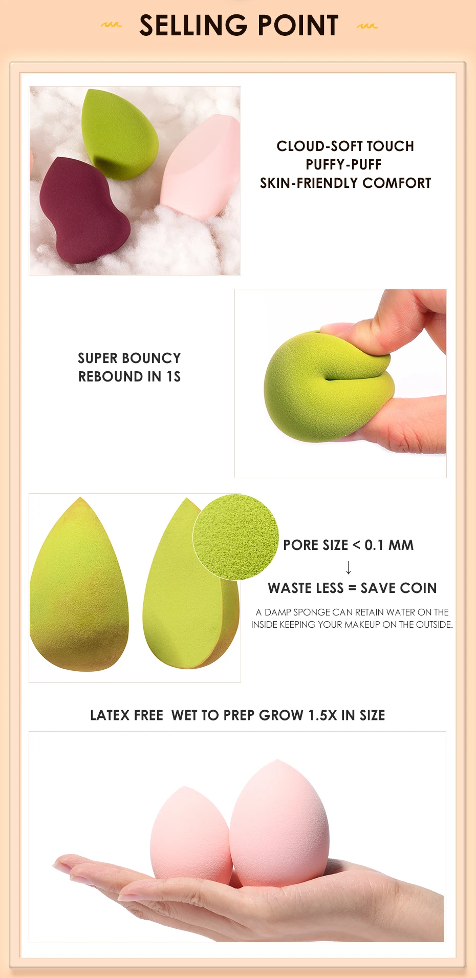 Особенности: -Облако-мягкий на ощупь, пышный Не раздражающих кожу -Супер надувной, отскок в 1s -Размер пор <0,1 мм: меньше отходов = экономия монет Влажная губка может удерживать воду внутри, сохраняя макияж снаружи. -Без латекса, влажный, чтобы подготовить рост 1.5x в размере -Двойное использование, Влажная и сухая, воздушная шлифовка -Универсальный разрез, 360 ° подходит для вашего лица Двойное использование, Влажная и сухая, воздушная шлифовка Сухое использование-подходит для порошковой основы Рассыпчатая пудра румяна, маркер Влажное использование-подходит для жидкой основы Foundation prime conclear Материал: Без латекса Антиаллергенная и без запаха пена