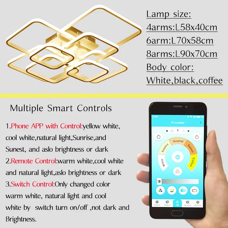 4. Приложение с регулируемой яркостью RC: Он имеет холодный белый, естественный белый, теплый белый, он может регулировать яркость и цвет, регулировка ярче-темнее и возможность переключаться с холодный светильник на теплый, есть пульт дистанционного управления и поддержка APP phone control)