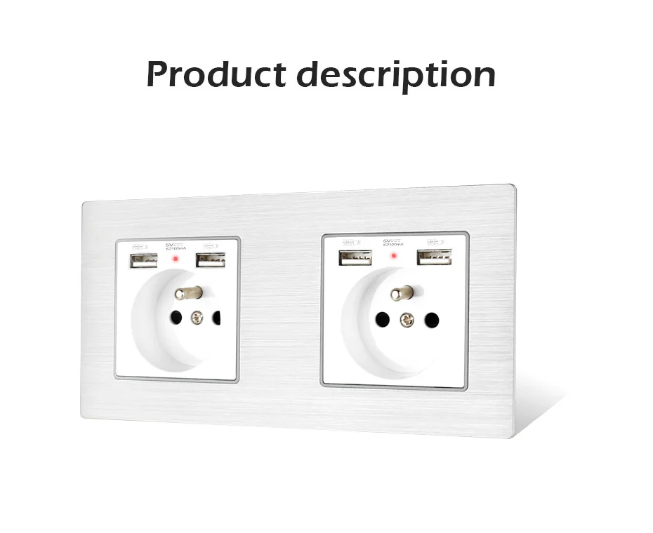 UNKAS французский стандарт черная алюминиевая металлическая панель настенная розетка с 4 USB зарядным портом 2.1A 16A для Мобильный телефон розетка