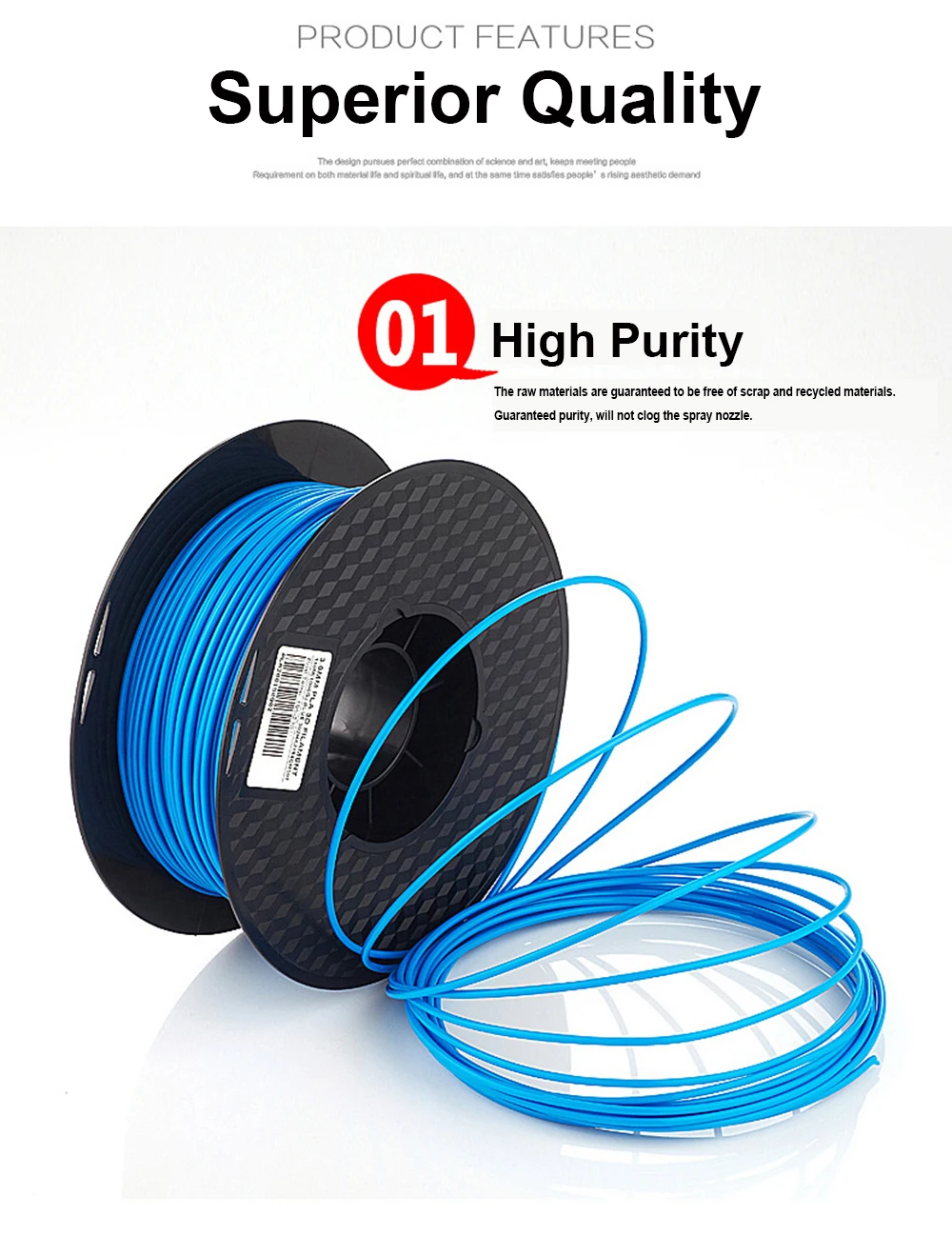 Название продукта: нить PLA Материал: пла премиум-класса Размер: 1,75 мм Температура печати: 195 - 230 ° C Упаковка: вакуумная упаковка с бумажной коробкой Вес нетто: 1 кг