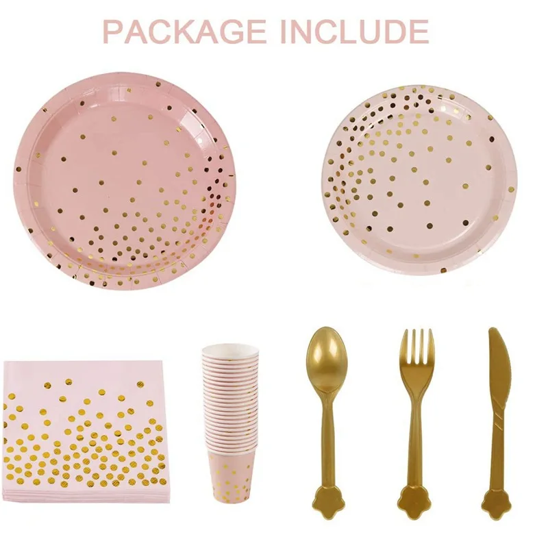 Китайский новый год вечерние украшения из розового золота одноразовая посуда тарелка чашки салфетки Star для baby Shower или для вечеринки день рождения вечерние, свадьбы, Рождества