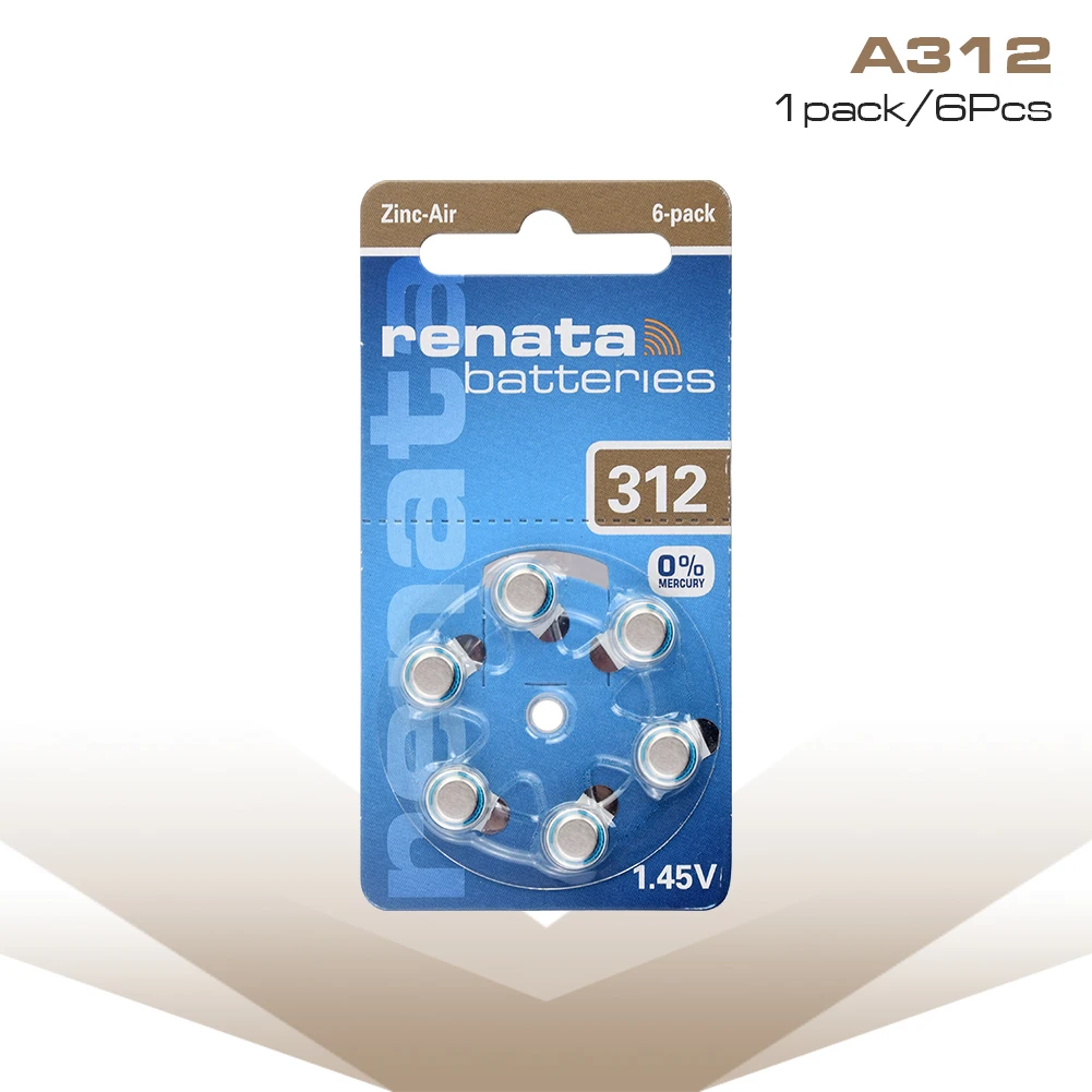 6 шт 1,45 V 165mAh A312 цинковый воздушный слуховой аппарат батарея 312 312A 312AE 312AP 312HP 312HPX 312P 312PA 312SA 312ZA кнопочные монеты