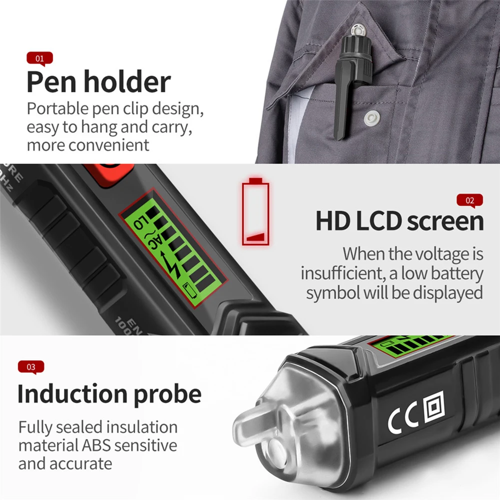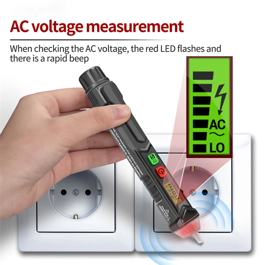 -NCV высокая/низкая чувствительность регулируемая: двойная чувствительность переменного тока диапазон напряжения 12 В ~ 1000 В и 48 В ~ 1000 В с кнопкой переключения S.