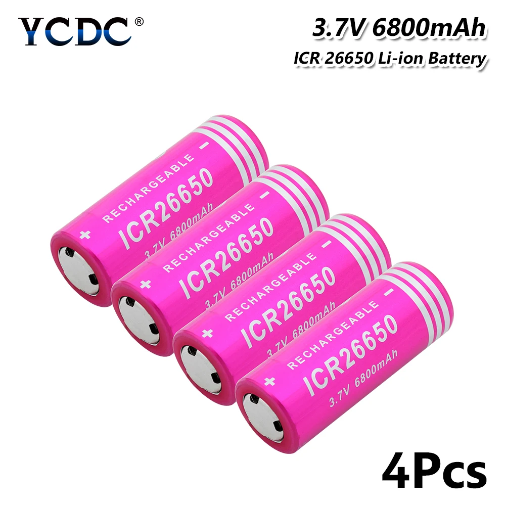 1/2/4 шт. 3,7 вольт ICR 26650 6800 мА/ч, литий-ионный аккумулятор li-Ion 26650 сотовый Батарея Перезаряжаемые для Led фонарик Фонарь налобный фонарь