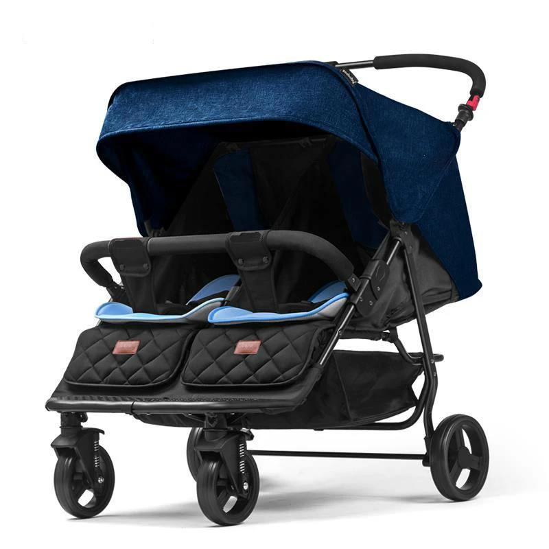 T22TwinКоляска: простая и стильная двойная коляска, может лежать плоско, регулируемая ножка, амортизатор переднего колеса, подходит для близнецов или одного большого и одного маленького ребенка!