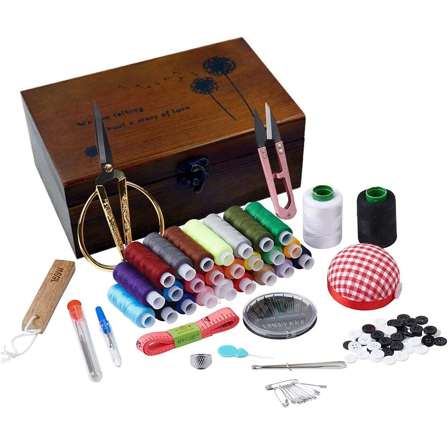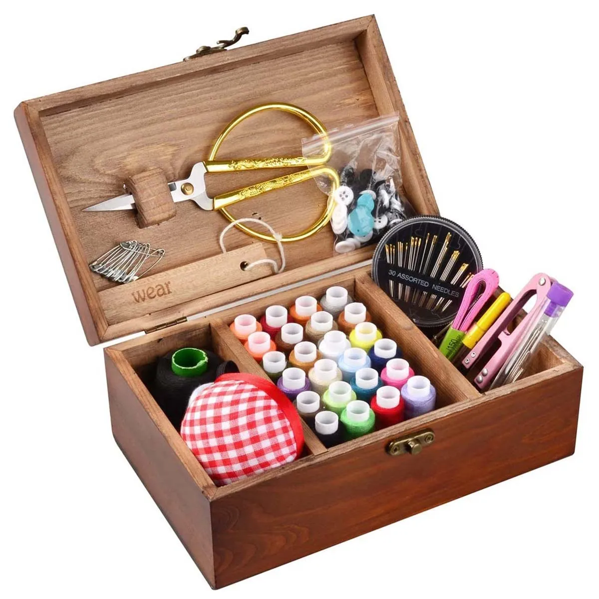 [Полезный инструмент]: этот милый швейный набор имеет все необходимые инструменты, которые необходимы для базового домашнего шитья и Починки. Все предметы в наборе изготовлены из высококачественных материалов, чтобы убедиться, что они не выполняют свою функцию. Хороший комплект для хранения дома. [Комплект «Все в одном»]: В комплект входят все необходимые инструменты, необходимые для выполнения базового ремонта-ножницы, швейная нить 24 цветов, 1 дополнительная белая и 1 Черная толстая нить, ассортимент швейных игл, рыхлитель швов, пуговицы, Нитевдеватель, наперсток, измерительная лента, кусачки для ниток, И кусок древесины. [Лучший подарок]: набор для шитья станет прекрасным подарком для рождественских чулок, частого путешественника, исполняющего художника, мамы, бабушки, пешего туриста, подростковые девочки-невесты и бридематы-подарки хозяйке и почти все! Набор одинаково хорош для использования как мужчинами, так и женщинами, и это определенно то, что люди хотели бы использовать и будут благодарны за. [Простота использования]: В комплект входят ножницы, которые легко прорезают лёгкий муслин, чтобы сделать ткань еще более толстой, игла, которая может прострочить на различной одежде и разрыхлитель швов, что делает выбирать стежки невероятно простыми. Выбирайте, легко поднимайте. [Удобно организовать]: все вещи хорошо организованы в милой деревянной швейной корзине. Вы также можете добавить свои швейные инструменты в коробку, чтобы помочь себе организовать и закончить беспорядок. Лучший компактный набор для шитья, который всегда доступен, внутренние шитья легко доступны, что делает его очень удобным в использовании