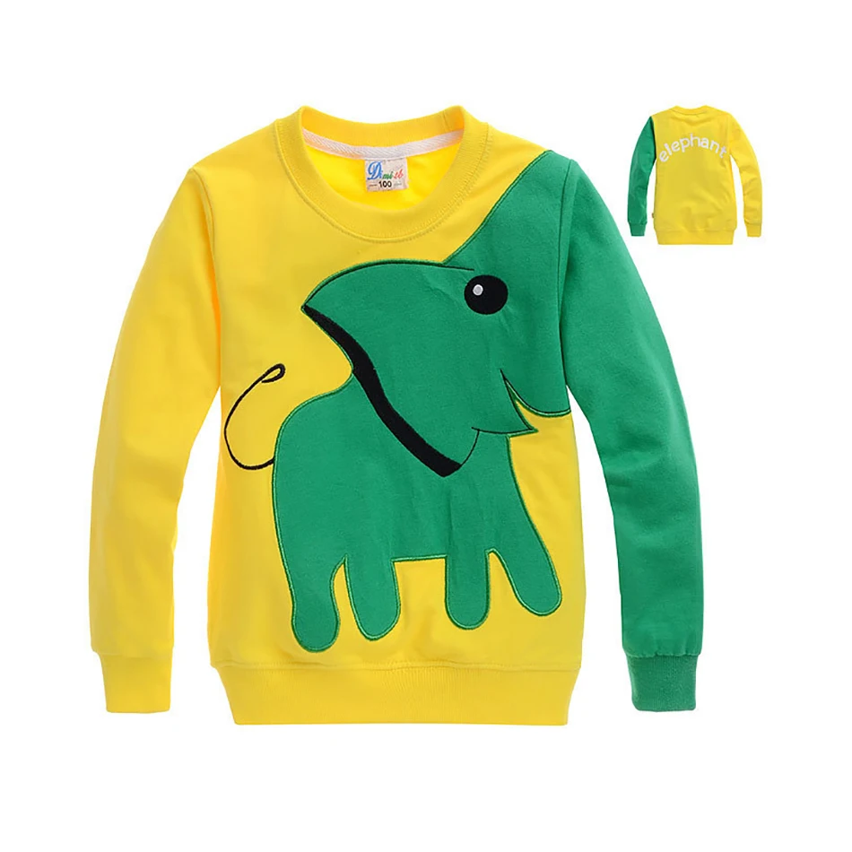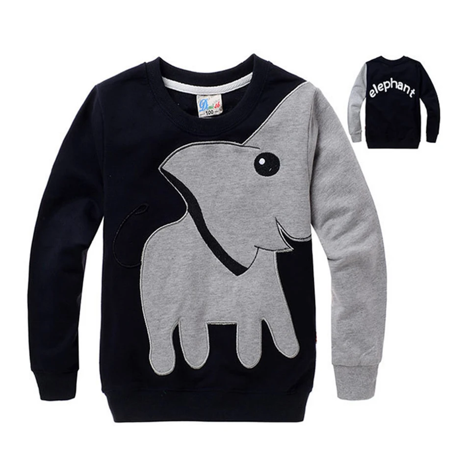 Детские футболки с принтом слона для мальчиков, детские топы с длинными рукавами, детский осенний однотонный хлопковый свитер, От 3 до 8 лет для мальчиков и девочек