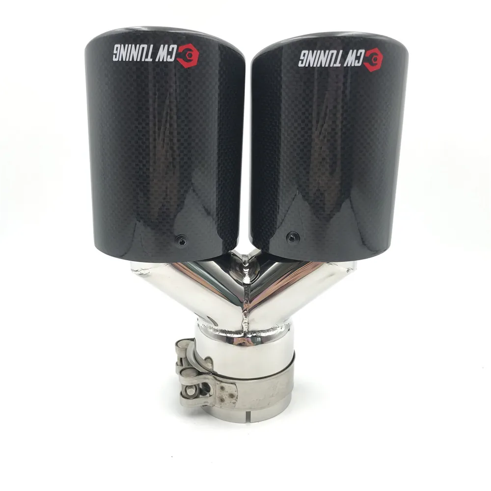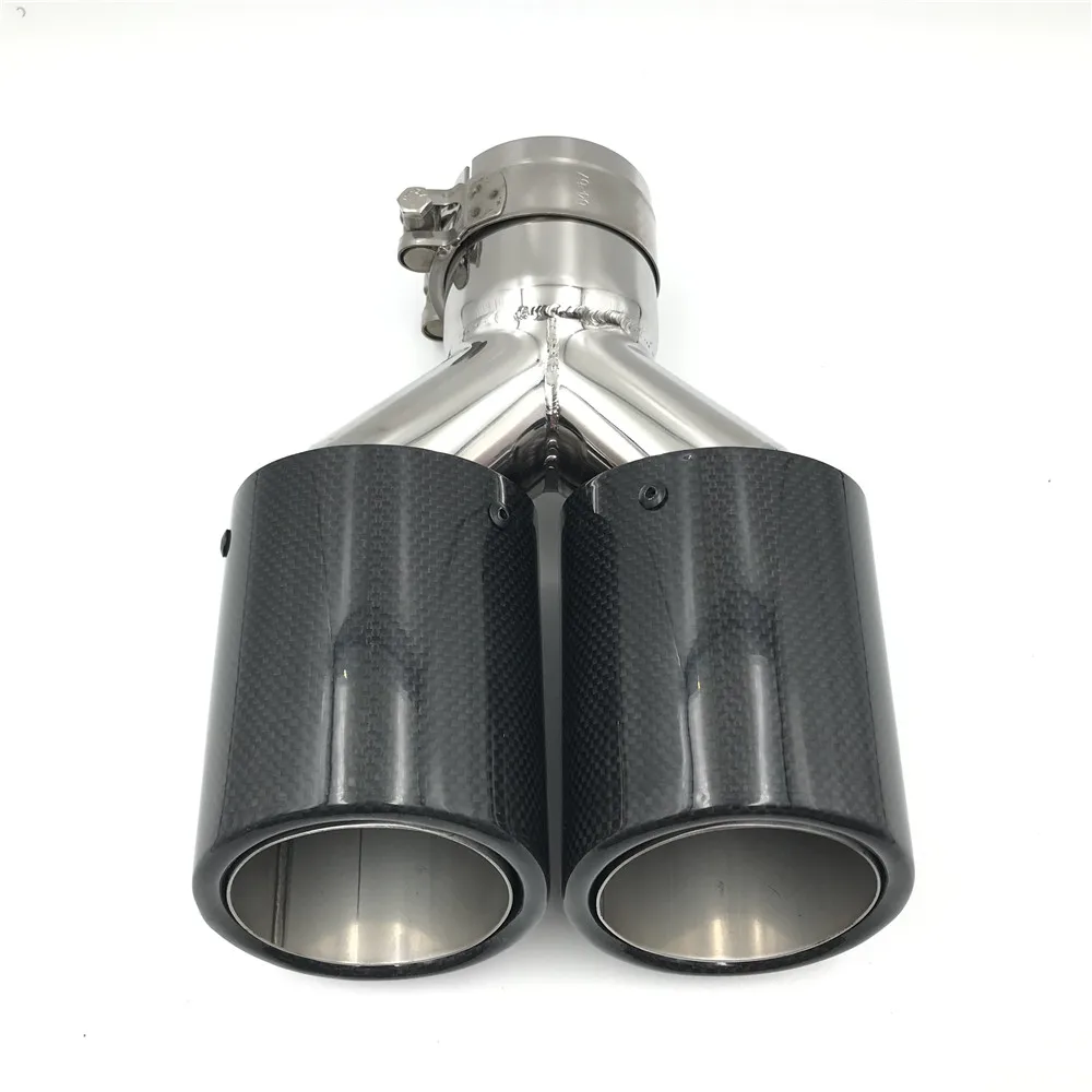 1 шт. Y Модель глянцевые Углеродные выхлопы двухконцевые наконечники для BMW для BENZ для AUDI для VW выхлоп двойной глушитель трубы хвостовые наконечники