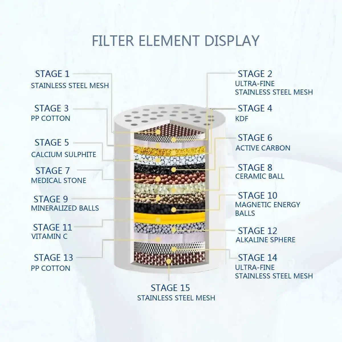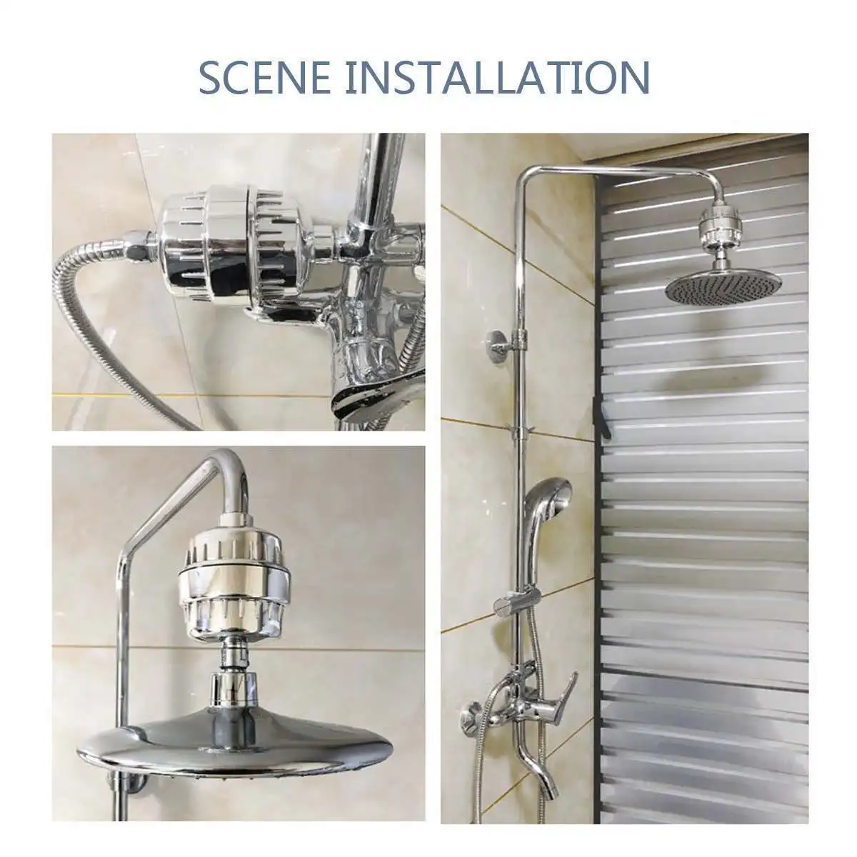 Особенности: -Более чистая вода дает вам более мягкую кожу, гладкие волосы. Душ в воде без хлора увеличивает более высокий уровень энергии. С фильтром вы сразу заметите, что вода мягче, мыло и шампунь пузырьки лучше, ваша кожа и волосы получают лучшую влагу. -Идеальное сочетание KDF, PP хлопка, кокосовой скорлупы керамических шариков с активированным углем и других фильтрующих материалов обеспечивает лучший эффект очистки воды. -Работает с любой душевой головкой и ручным душем. Инструмент не требуется. Установите в течение нескольких минут. Просто завинчивайте между душевой и душевой Флекс. Легко собрать и разобрать. Защищает весь душ в доме от грязной воды. -Нанесите на холодную воду и горячую воду, высокая температура и давление не повлияют на функцию самого продукта. Многослойный фильтрующий слой, который поможет вам удалить воду из примесей и пигментов, а также может поглощать токсичные газы, вредные вещества и плохой запах, эффективно предотвращает производство накипи, плесени, чтобы обеспечить вам здоровое качество воды. Спецификация: Тип: 15-ступенчатый фильтр для душа Цвет: серебристый Материал корпуса: АБС-пластик Диапазон температур: 5-35 ℃ Гидравлическое давление: 0,15-0.3mpa Размер: как показано на рисунке Вес: 13,3 г Расход воды: ≥ 90 л/ч Посылка включает в себя: 1 x насадка для душа PTFE Лента