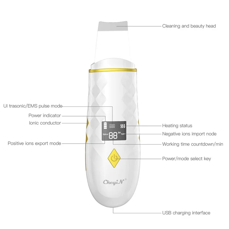 4 режима Функция: 1) Режим ультразвуковой очистки: для глубокой очистки и удаления примесей. 2) ионный + свинцовый режим: эффективно выводит загрязнения и черные точки. 3) ионно-свинцовый режим: глубоко свинец в питании для повышения эффективности. 4) импульсный режим EMS: активирует коллаген, подтягивает и укрепляет кожу. Сильные функции: 1) Улучшает метаболизм. 2) повышает эластичность кожи. 3) способствует циркуляции крови. 4) удаляет мелкие морщинки. 5) Улучшает регенерацию и проницаемость кожи. 6) массаж кожи для лучшего впитывания питания.