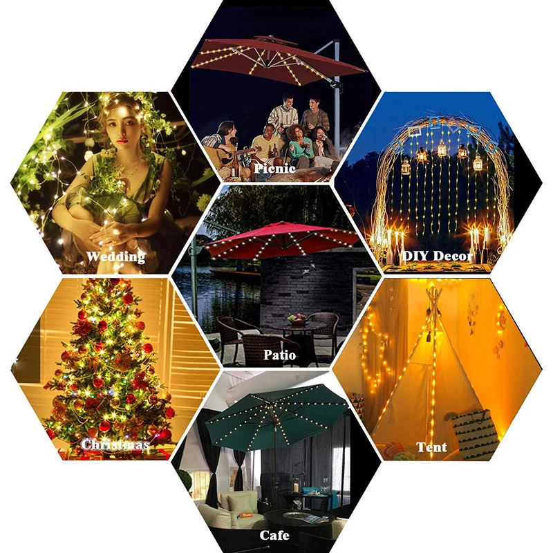 Идеальные украшения зонтичных огней: 104 светодиодный с 8 стальными ребрами и 13 светодиодный светильник на каждом ребре. Подходит для украшения зонта или палаток