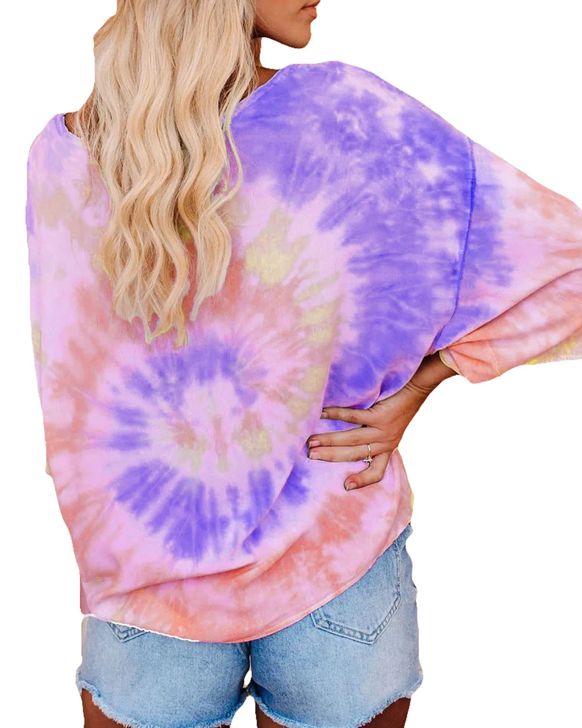 Женская Свободная блузка с v-образным вырезом, Повседневная Кнопка крыла летучей мыши, топы с принтом в виде галстука-красителя