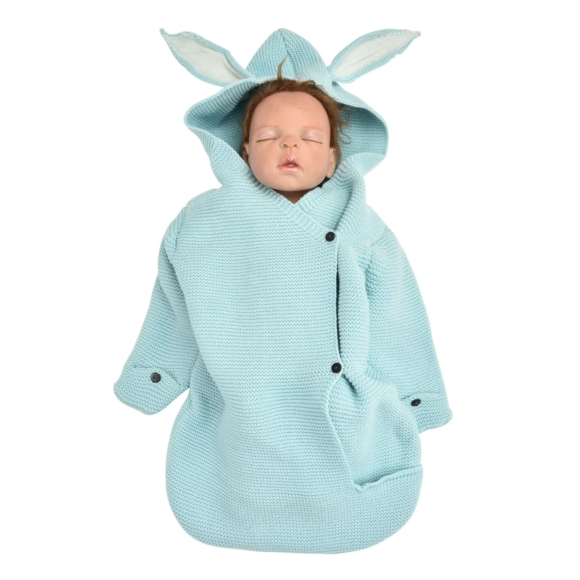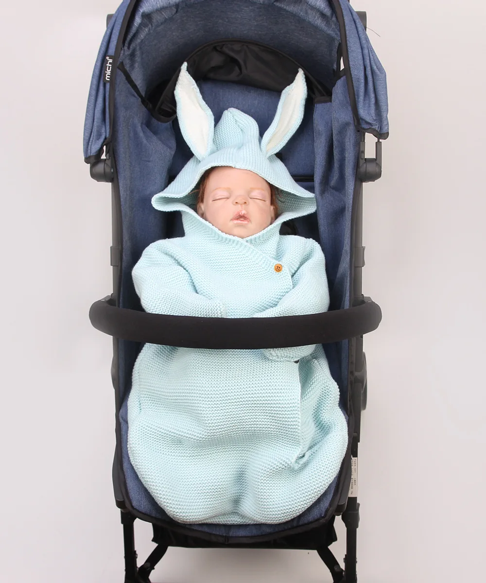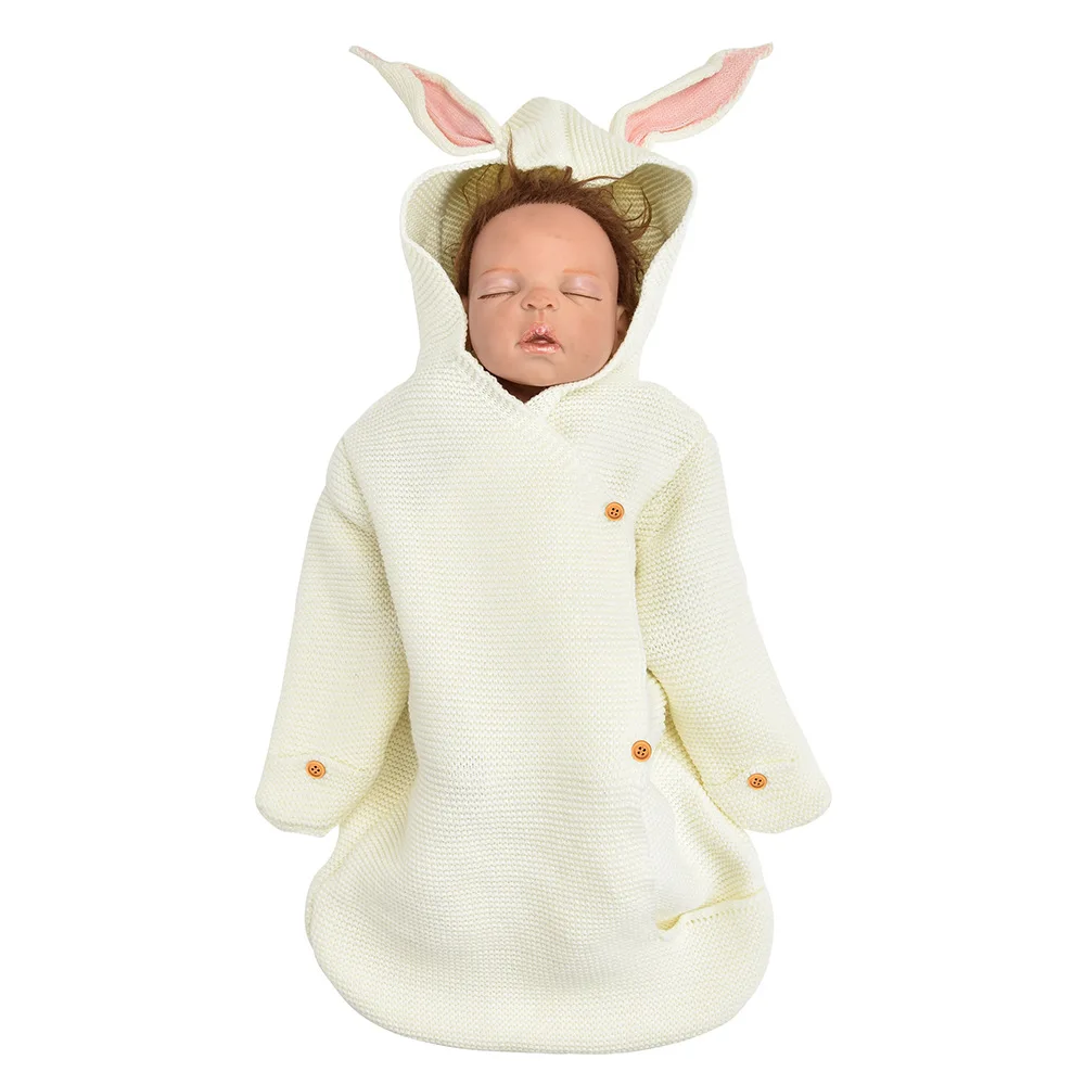 Детское очаровательное вязаное одеяло для сна с милыми заячьими ушками, спальный мешок для новорожденных, мягкие пеленальные аксессуары для фотографирования, розовые постельные принадлежности, реквизит