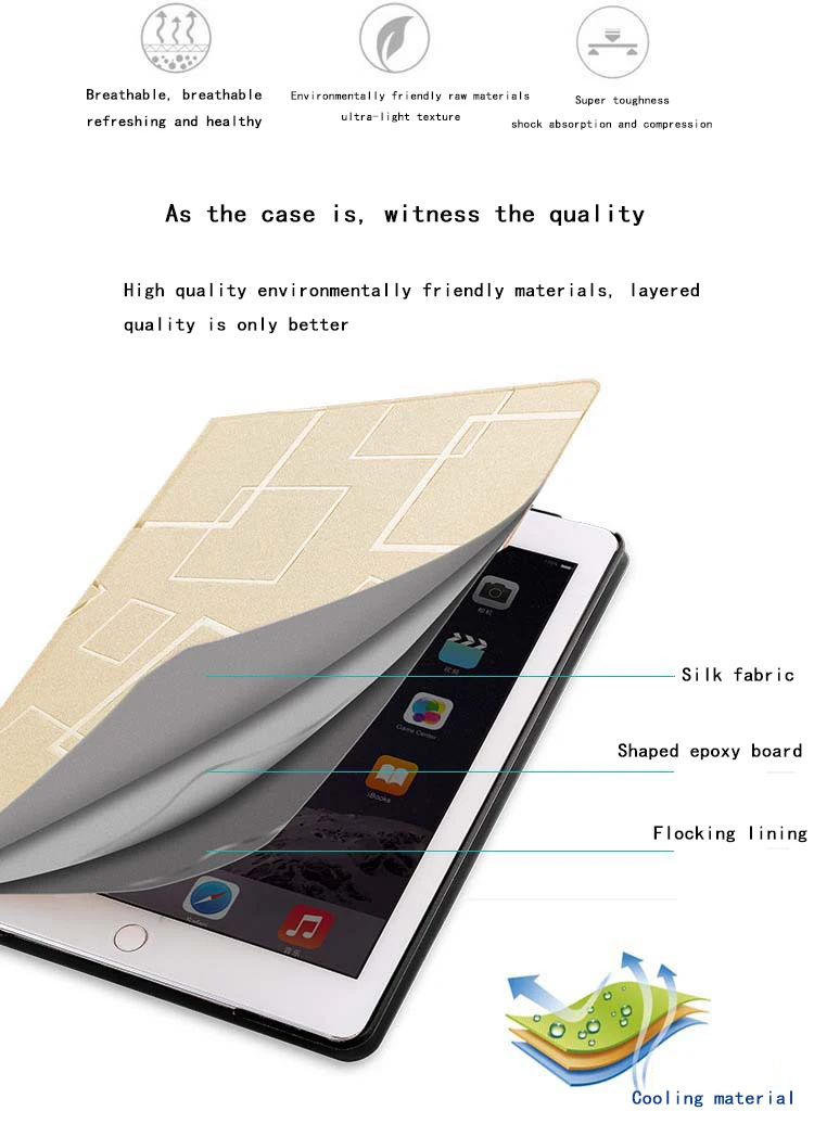 1. Уникальная искусственная кожа PU, 6 цветов на выбор, Сделайте ваш iPad уникальным; 2. Посадка настоящей машины очень хорошая, обеспечивая полный спектр идеальной защиты от внешних повреждений; 3. Супер прочная конструкция положения отверстия, каждое положение отверстия подобрано очень точно, операция очень удобна; 4. Он изготовлен из искусственной кожи чехол + усовершенствованный ПУ нижний корпус, с высокой стойкостью к истиранию, моющийся, изысканный внешний вид, теплый и комфортный на ощупь, чтобы гарантировать, что вы не можете положить его вниз.
