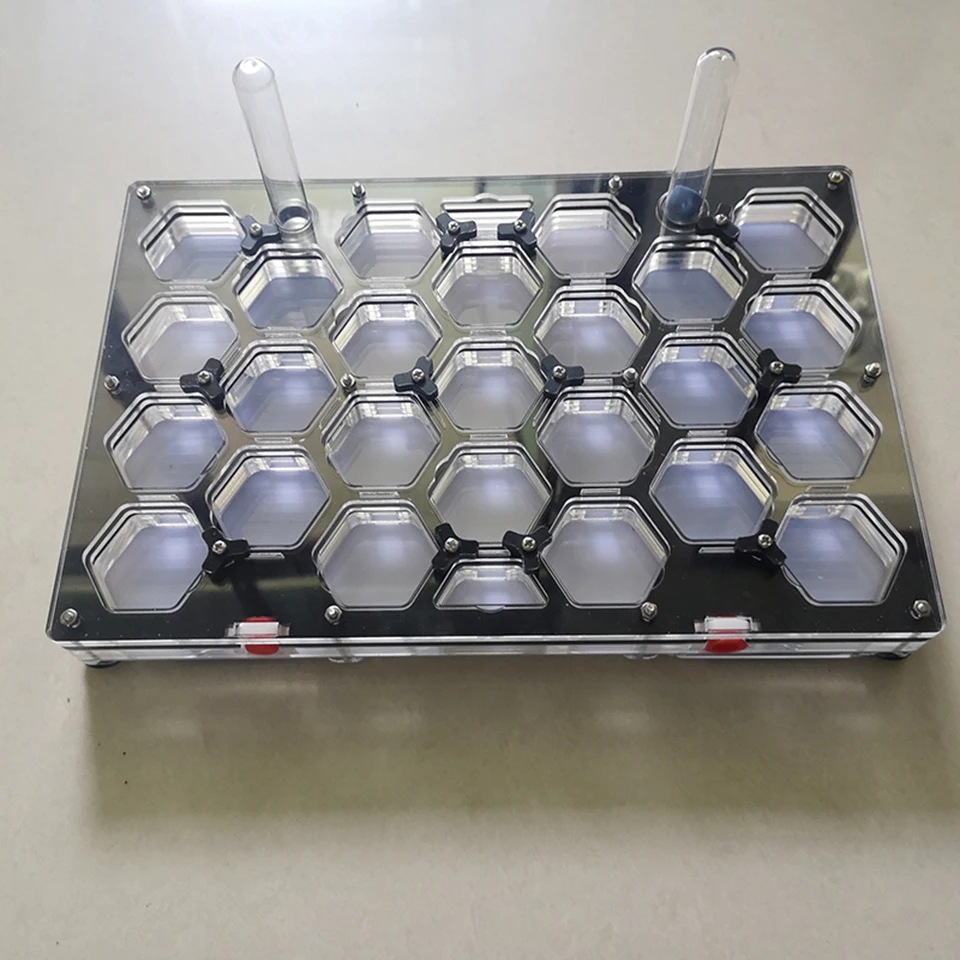 Это сотовое плоское гнездо, акриловое гнездо для муравья, подарок на день рождения, мастерская муравьев Цвет: черный Гнездо Размер: 30X20X2.7cm Гнездо Материал: акриловое волокно Монтажный винт: нержавеющая сталь 304 Способ увлажнения: полотенце для кожи deerskin увлажняющее (оригинал) Это гнездо подходит для средних и больших групп. Королева и рабочие муравьи несут ответственность за свои обязанности. Напряженная работа днем и ночью наконец заставила муравьиную колонию продолжать расти, и Муравьиное гнездо больше не может оставаться. В это время эта большая сотовая плоскость заменяется. Также открылась мечта.