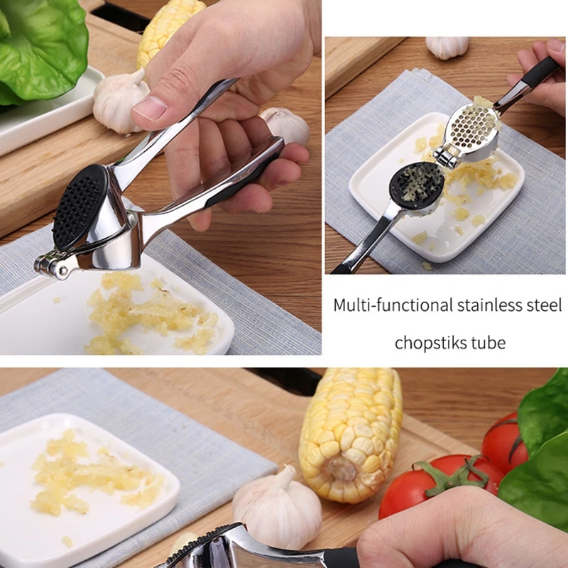 Multifunction Stainless Steel Garlic Press Garlic Ginger Squeeze Crusher Slicer Tool