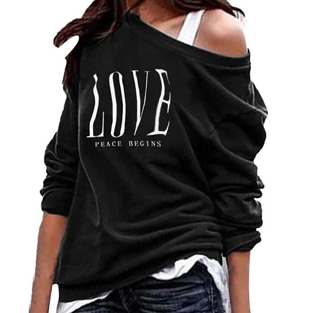 Женский привлекательный свитшот с открытым плечом, пуловер с длинным рукавом и надписью Love