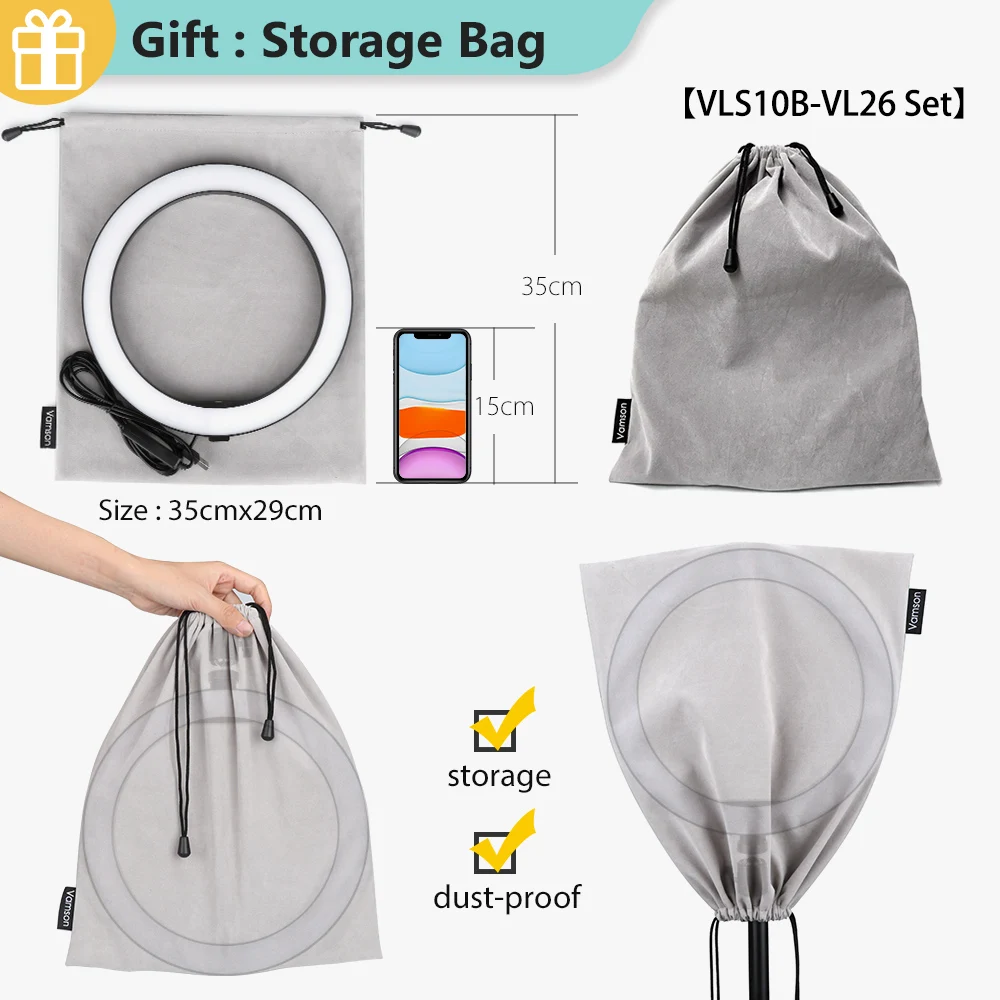 Только следующие варианты получат подарок: 【 VLS10B-VL26 набор Супер практичная сумка для хранения кольцевой светильник! Размер достаточно большой!(35 см × 29 см) Может храниться от пыли после использования! Ограниченное количество! Топ 100 можно получить бесплатно!