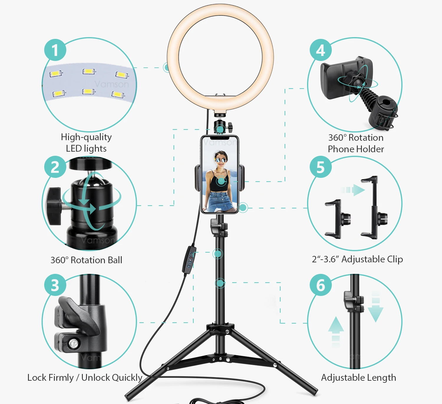 Подходит для многих социальных сетей, таких как создание, видео в режиме реального времени, студийный светильник, фотография. Для толпы: визажисты, косметологи, создатели контента YouTube, тату-художники, видеоблоггеры, парикмахеры/Салоны, любители Селфи, Facebook Live, Instagram Live, Snap chat, Studio lighting, ПОРТРЕТНАЯ ФОТОГРАФИЯ и потоковая передача и т. Д.