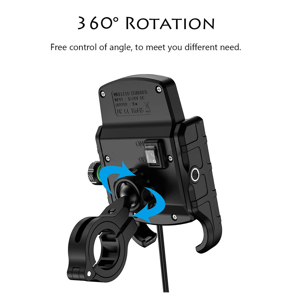 Беспроводное зарядное устройство для мотоцикла, кронштейн 3,5-6,5 дюймов, мобильный телефон, держатель, крепление с USB, быстрое зарядное устройство, GPS, мото аксессуары для мотоциклов