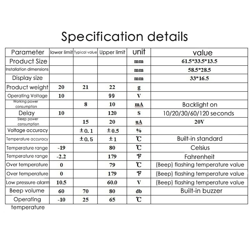 <Многофункциональный: не только может отображать емкость аккумулятора и напряжение, но также может отображать температуру, ℃ и ℉ может быть легко переключен.