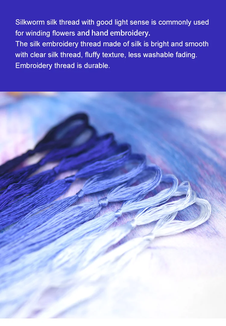 Silkworm silk thread with good light sense is commonly used for winding flowers and hand embroidery.