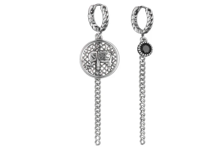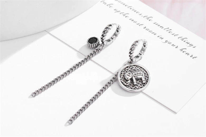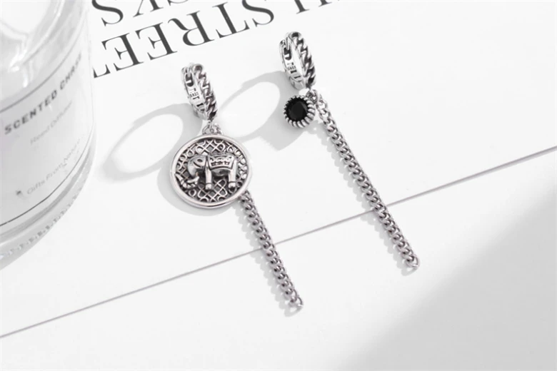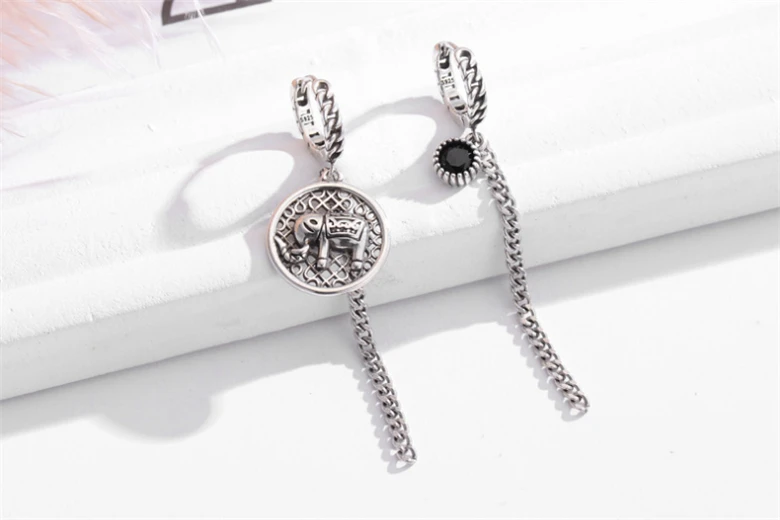 Корейский стиль, дропшиппинг, животное, слон, Длинная кисточка, висячие серьги, S925 Настоящее серебро, винтажные черные камни, серьги-гвоздики для женщин