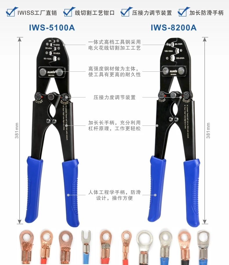 【Особенности обжима 5A-100A открытый нос/80A-200A открытый нос