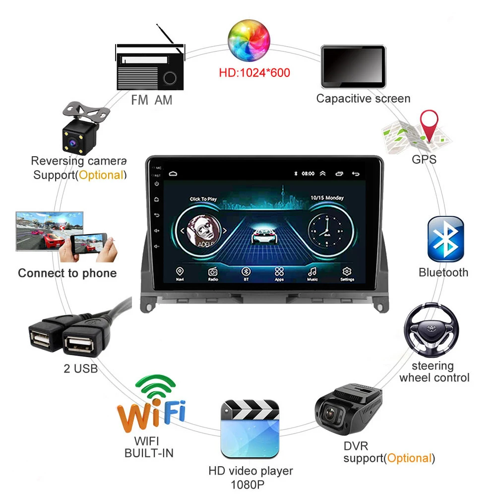 2 din Автомобильный мультимедийный плеер Android 8,1 Wifi навигация GPS Авторадио для Mercedes Benz C Class 3 W204 S204 2006 - 2011