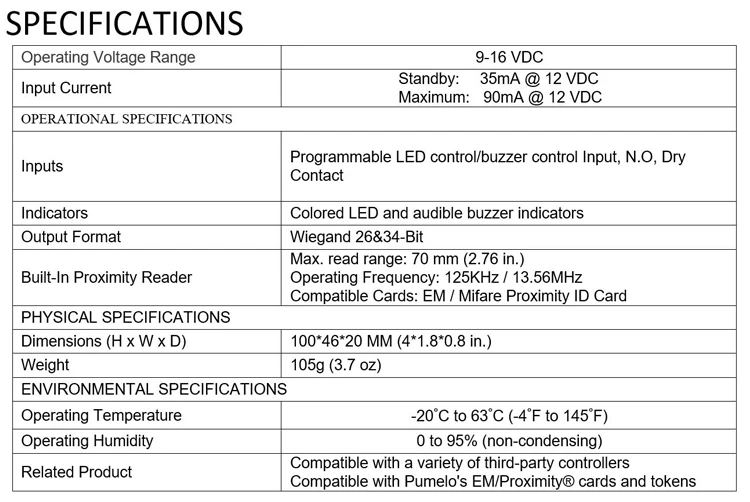 Устройство считывания идентификационных карт 125 кГц обеспечивает отличную и последовательную производительность в компактном дизайне mullion с привлекательным стилем, чтобы соответствовать любому украшению для приложений контроля доступа.