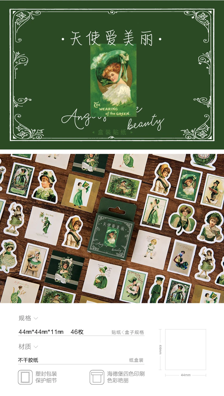 Название: Tianshi ai mei li Материал: наклейки Рисунок: 1 дизайн Количество: 46 ⑤ кор. Размер: 44*44*11 мм Особенности: изысканный узор Вес: 11 г